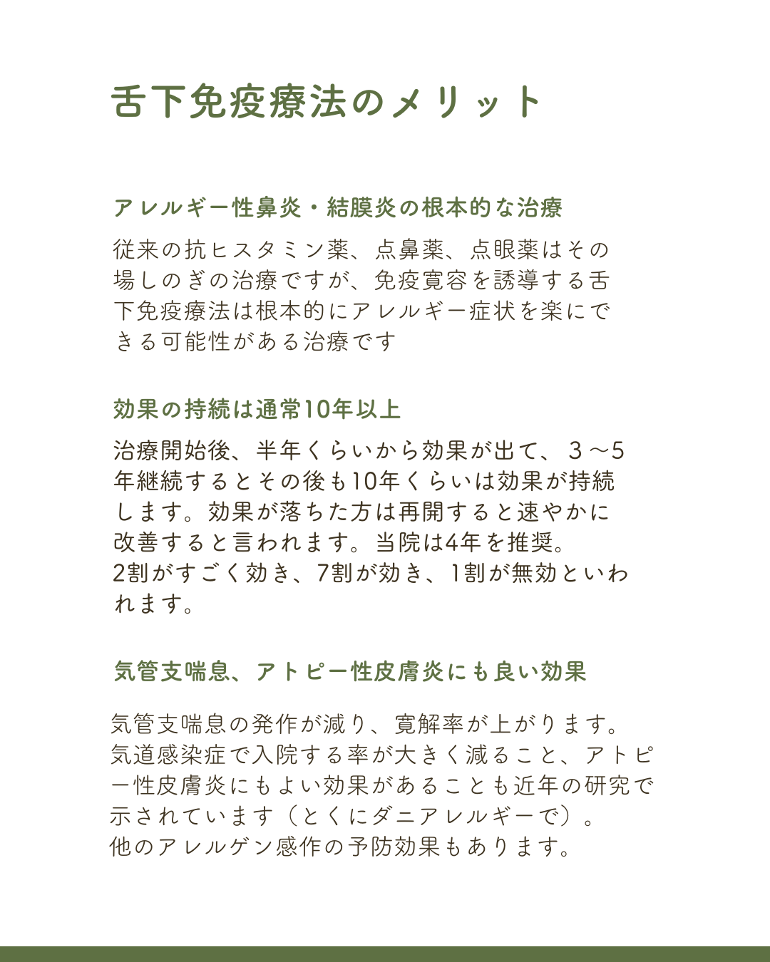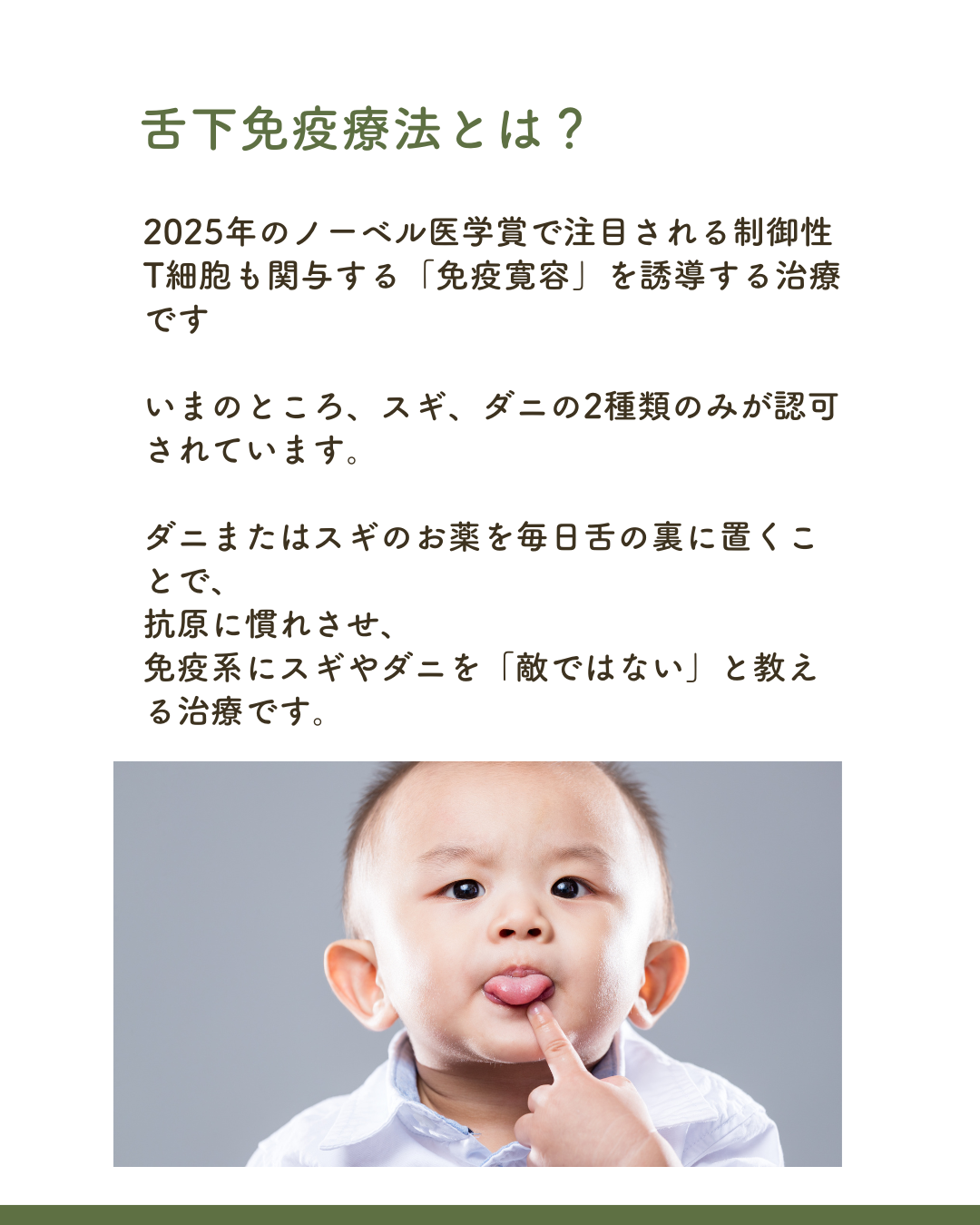 舌下免疫療法(アレルゲン免疫療法)を行っています。